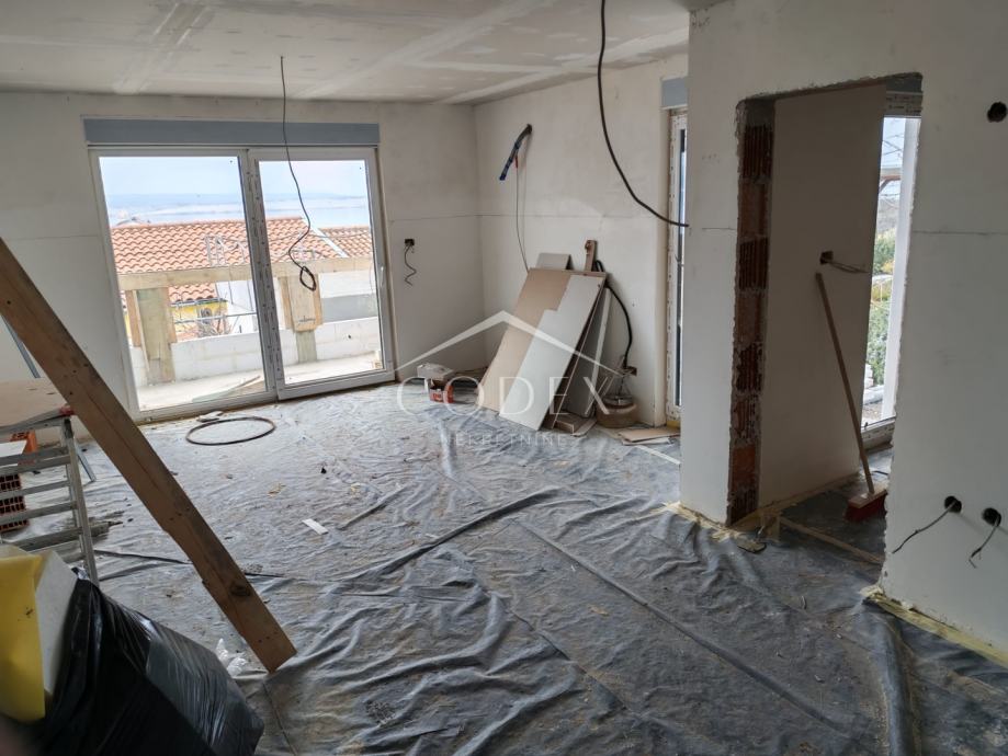 Unutrašnjost nekretnine pažljivo je projektirana kako bi pružila maksimalnu funkcionalnost i udobnost, a sastoji se od dvije prostrane spavaće sobe, kupaonice te otvorenog prostora koji objedinjuje kuhinju, blagovaonicu i dnevni boravak. Trenutačno su u tijeku završni radovi postavljanja vrhunske keramike, što budućem vlasniku jamči moderan i svjež estetski doživljaj. Stan je opremljen kvalitetnom PVC stolarijom koja osigurava izvrsnu toplinsku i zvučnu izolaciju, dok je sustav grijanja i hlađenja riješen putem klimatizacije. Poseban naglasak stavljen je na prostrani balkon koji služi kao prirodni produžetak dnevnog boravka, idealan za uživanje u pogledu i svježem morskom zraku.