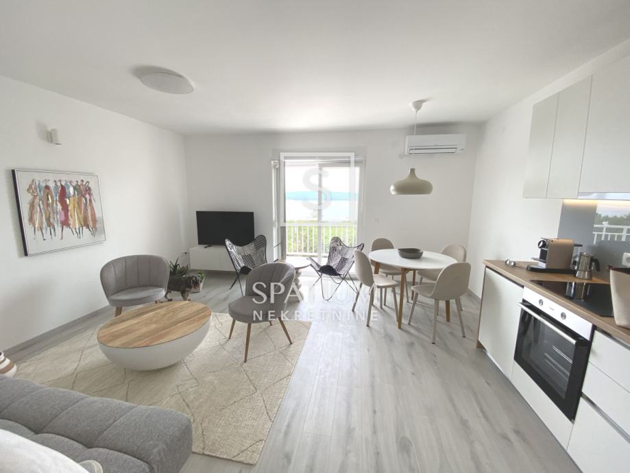 DRAMALJ, u ponudu smo dobili novouređeni stan za dugoročni najam površine 45,18 m2 sa lijepim pogledom na panoramu. Sastoji se od otvorenog koncepta dnevnog boravka sa kuhinjom i blagovaonom. Sadrži jednu spavaću sobu, kupaonu i toalet, te lijepu i prostranu terasu za uživanje. Nekretnini pripada jedno parkirno mjesto. Objekt je kompletno uređen i opremljen. Cijena najma ukljućuje režije.
