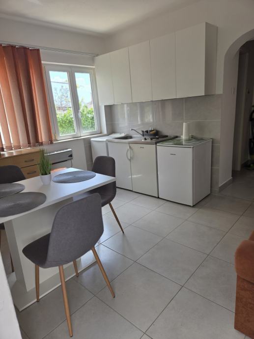 Prodaje se potpuno namješten, adaptiran apartman u prizemlju zgrade, na izvrsnoj lokaciji u Dramlju-Crikvenica, koji se sastoji od kuhinje sa blagovaonicom, kupaonice te dvije spojene spavaće sobe odnosno dnevnog boravka i spavaće sobe sa izlazom na prostranu terasu. Kauči u blagovaonici i dnevnom boravku su na razvlačenje. Uvijek dostupan javni parking nalazi se iznad objekta, na proširenju uz cestu. Do prvih plaža udaljen je 10 minuta lagane šetnje a od mora 200 m zračne linije.
