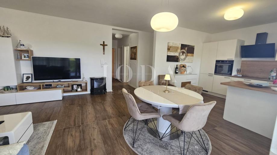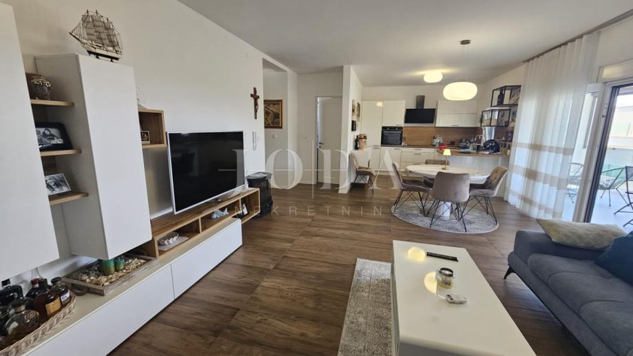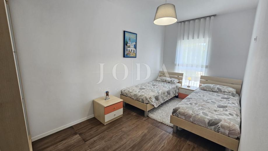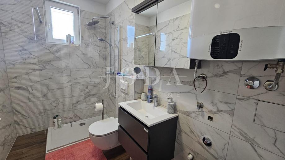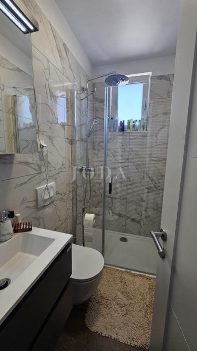 Prodaje se moderan penthouse smješten u stambenoj zgradi u kojoj su samo 3 stana, a nalazi se na kraju slijepe ulice, što garantira mir i odmor u ljetnim mjesecima. Udaljenost do mora je svega 300m.