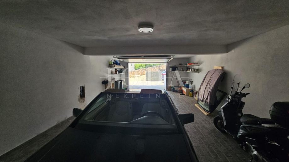 U vlasništvu stana a je i garaža od 40m2 koja se nalazi u suterenu zgrade, dok je pokraj ulaza u penthouse okućnica na koju je moguće parkirati još par automobila.Uz garažu je i dodatni apartman jednosobni sa dnevnim boravkom,potpuno opremljen.