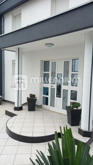 Kuća ima uređenu okućnicu od 214m2 na kojoj su kamin, bazen, sunčalište i uređen vrt.