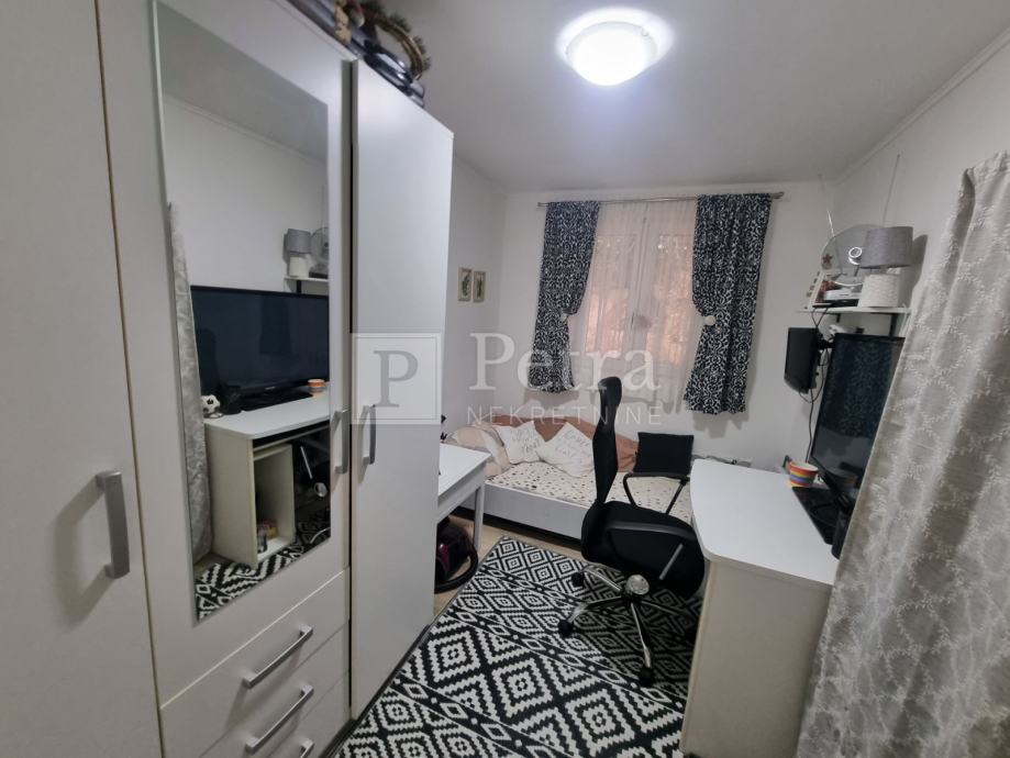 Simpatična kuća u nizu na parceli od 347 m2, omeđena kamenim zidom koji pruža intimu. U dvorištu se nalazi spremište. Sastoji se od prizemlja i kata. U prizemlju se nalaze dnevni boravak, kuhinja i kupaonica. Do kata vodi unutarnje ili vanjsko stubište. Na katu su dvije spavaće sobe i izlaz u stražnji dvor. Iz hodnika stubište vodi u tavanski prostor. Grijanje je na pelete i klima uređaj. Na južnoj strani se nalazi terasa s koje se pruža pogled na more. Do kuće vodi pješački put, a parking se nalazi na 50 m od kuće.