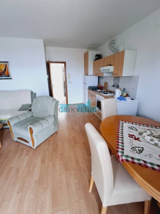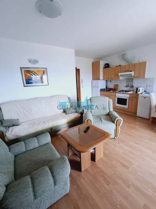 Stan površine 45 m2, nalazi se na 1.katu, a sastoji se od dnevnog boravka sa kuhinjom, jedne spavaće sobe, hodnika, kupaonice i prostranog balkona s otvorenim pogledom na more.