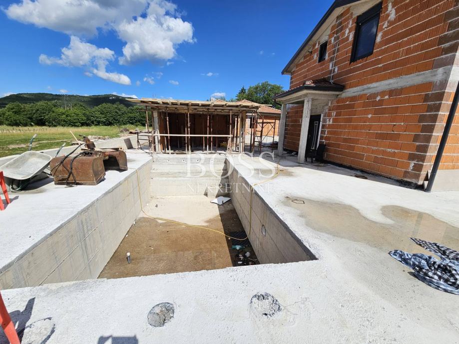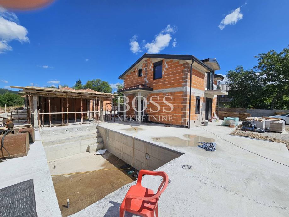 Dražice, odlična novogradnja na lijepoj poziciji. Po projektu je kuća s jednim dvoetažnim stanom. Iz tlocrta je vidljiv plan prostorija, prizemlja i kata. Kuću je moguće podijeliti na dvije stambene jedinice. Kuća će imati termo fasadu, stiropor 10cm, poroterm ciglu, trokomornu PVC stolariju. Etažno podno grijanje s dizalicama topline, klimatizacija, dimnjak, itd. Na okućnici će biti grijani bazen 32m2. Planirani završetak radova ljeto 2024. godine. Kuća je idealna kao investicija za najam ili za ugodan obiteljski život. Nalazi se u vrlo lijepom i mirnom dijelu Dražica, svega 15 minuta od centra Rijeke, Kostrene. Rijetkost u ponudi! Boss, kontakt: 091/379-1010 Dragan