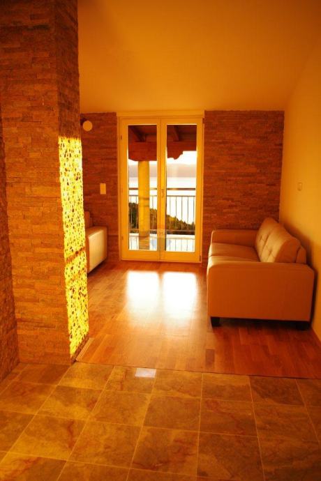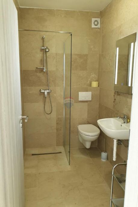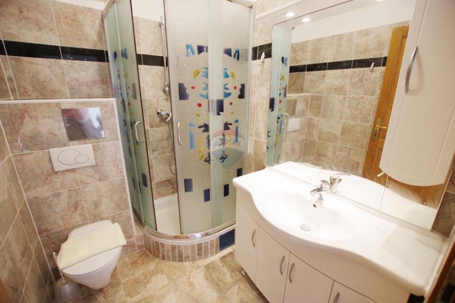 Prodaje se samostojeća apartmanska kuća stambene površine od 400m2 raspoređenih na prizemlje, prvi i drugi kat. Sastoji se od 7 apartmana i jedne garsonijere površine 20 m2. U prizemlju se nalaze dva apartmana svaki ima jednu spavaću sobu, dnevni dio, kupaonu i terasu odvojeno, na prvom katu nalaze se tri apartmana od kojih dva stana imaju po dvije spavaće sobe, dnevni dio i kupaonu kao i na drugom katu gdje su ostala dva apartaman s dvije spavaće sobe, dnevnim dijelom i kupaonom. Svaki apartman ima svoju terasu ili balkon zasebno. Kuća se nalazi na jednoj katastarskoj čestici pravokutnog oblika površine 1310 m2, na ograđenoj okućnici nalazi se i bazen površine 5x10 m.