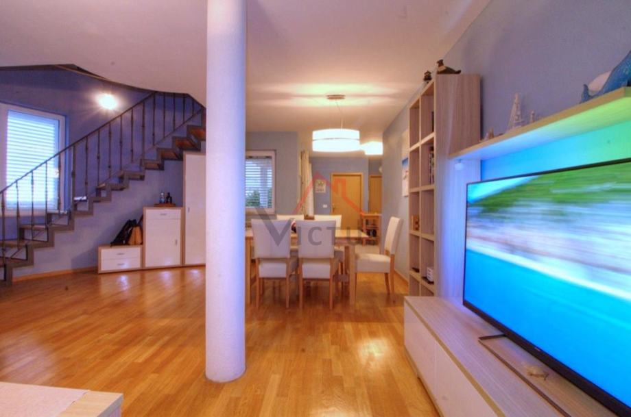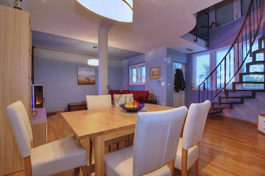 Raspolaže ukupnom stambenom površinom od 230 m2 podijeljenu na dvije etaže te uključuje dvije stambene jedinice.