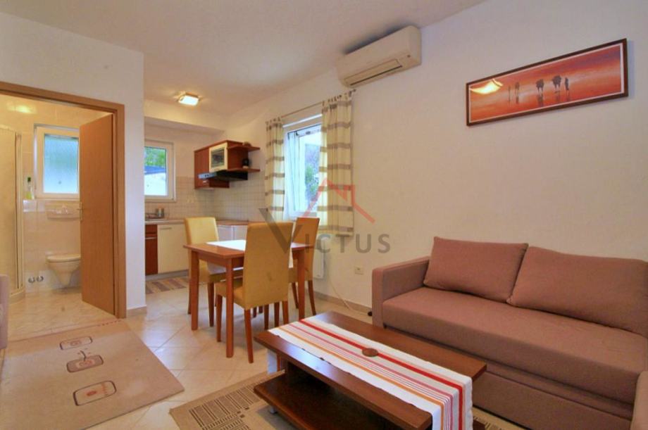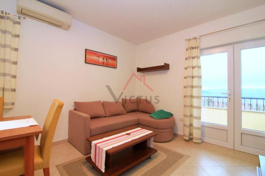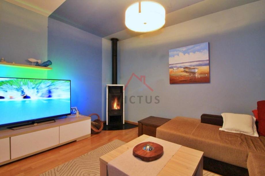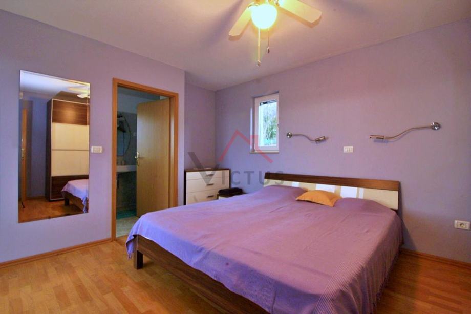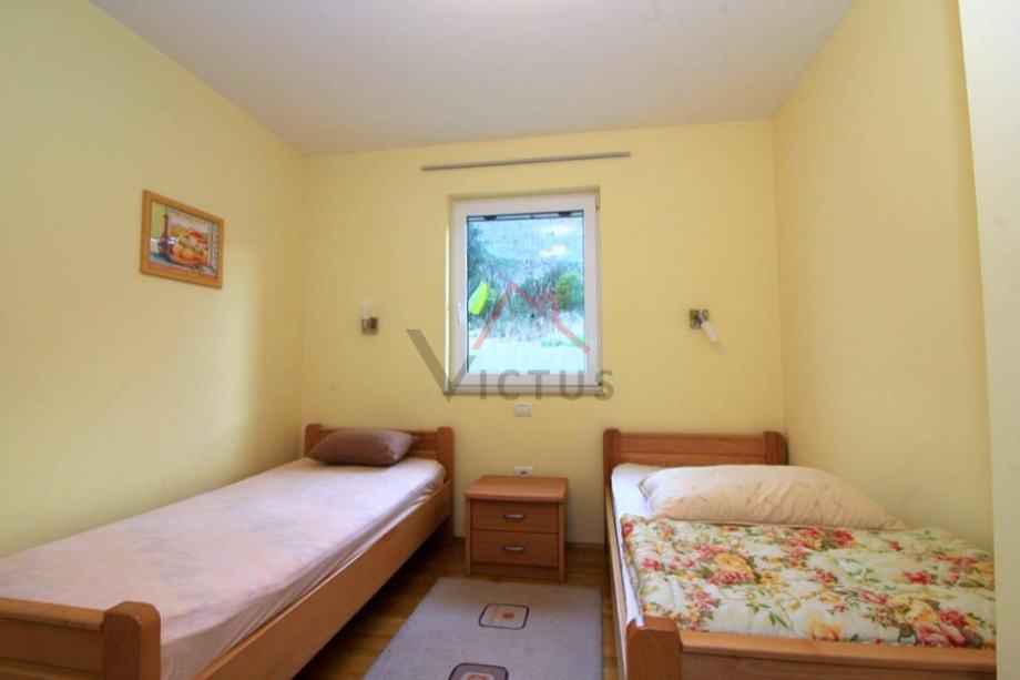 Manji stan/apartman površine 46 m2 na gornjoj etaži sa zasebnim ulazom sastoji se od kuhinje, blagovaonice, dnevnog boravka, spavaće sobe i kupatila. Sa svih terasa kuće pruža se otvoren/panoramski pogled na Kvarner i otoke. Grijanje je putem peći na kruta goriva, a instaliran je i klima uređaj.