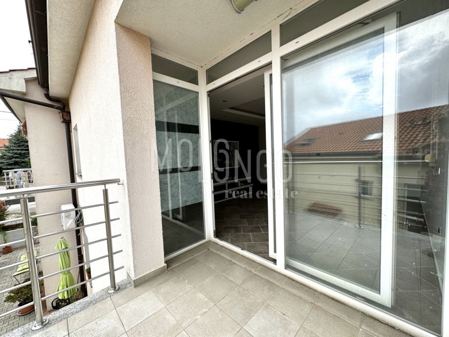Dnevni boravak je također smješten na donjoj etaži i ima izlaz na balkon. Balkon pruža mogućnost opuštanja na otvorenom prostoru te uživanja u svježem zraku i pogledu na okolinu.