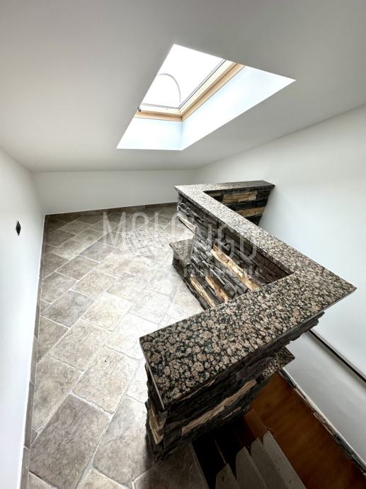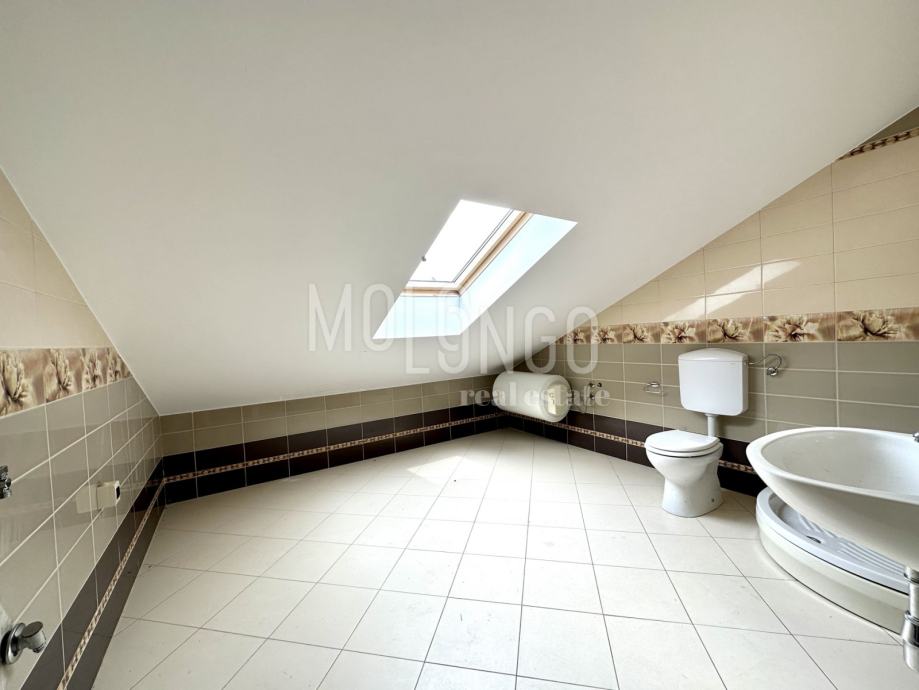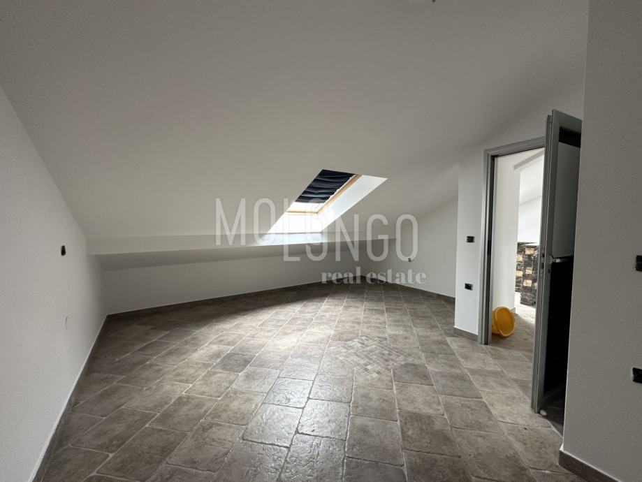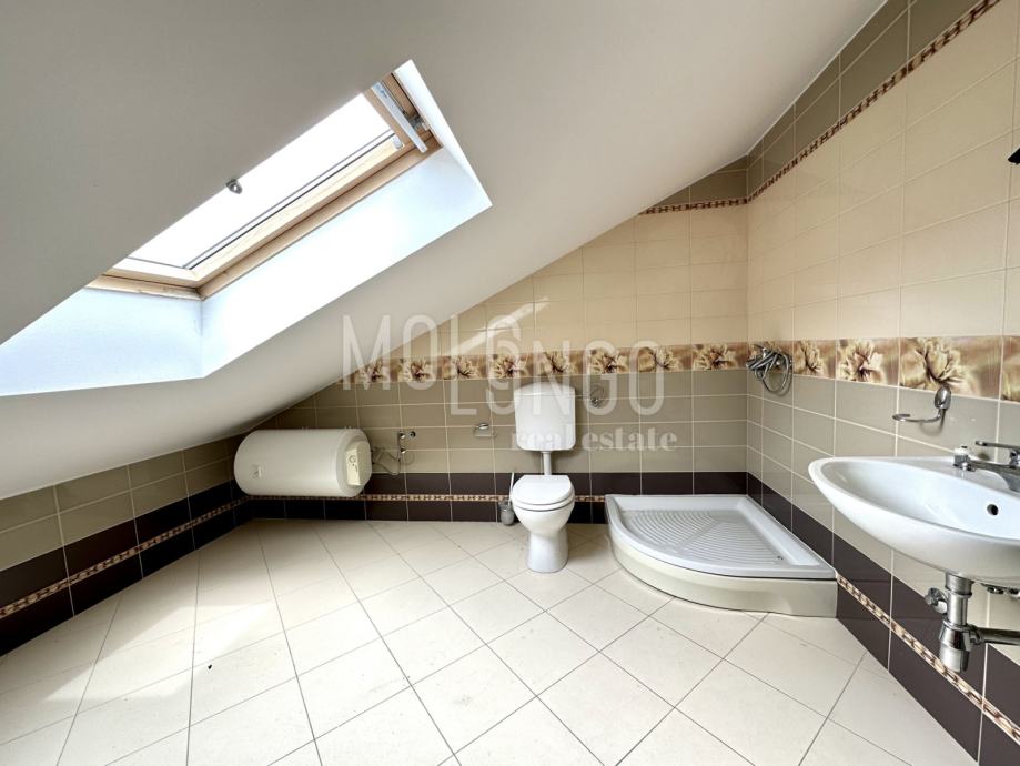 Visoko potkrovlje stana je druga etaža i sadrži dvije spavaće sobe i kupaone.. Potkrovlje ima poseban šarm zbog svojih kosina i nagiba krova, što dodaje karakter prostoru. Ove spavaće sobe pružaju privatnost i udobnost za odmor i spavanje. Također, svijetle boje i dobro osvjetljenje mogu doprinijeti ugodnoj atmosferi prostora.