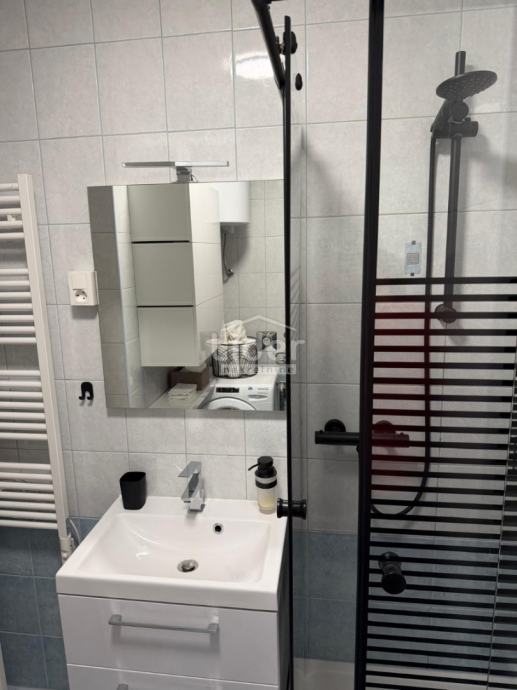 Stan je u potpunosti namješten i opremljen svim potrebnim aparatima: perilicom rublja, perilicom posuđa, televizorom te Wi-Fi internetom (MaxTV). Grijanje i hlađenje osigurani su klima uređajem.