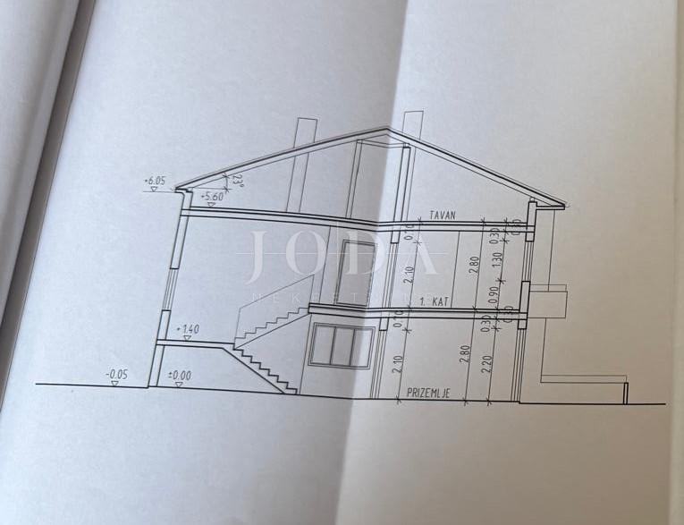 Nedovršena samostojeća kuća, P+1, na lijepoj i mirnoj lokaciji, ukupne površine 220 m2, na parceli od 748 m2. U prizemlju je završen dvosobni stan s dnevnim boravkom, useljiv. Unutrašnje stepenište za kat koji u fazi niskog roh bau, sa kojeg se pruža otvoren pogled na more. Blizina svih životnih sadržaja.