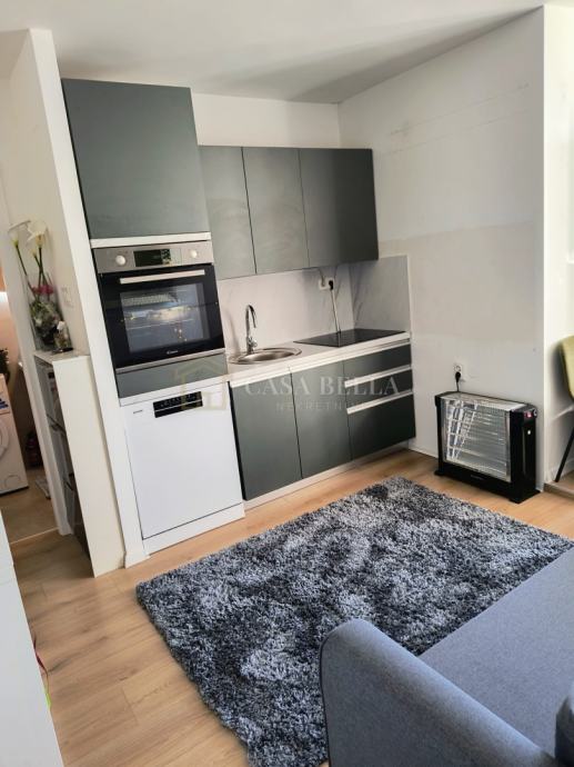 Stan se sastoji od kupaonice, kuhinje povezane s dnevnim boravkom i blagovaonicom te spavaće sobe iz koje se izlazi na zatvorenu lođu s pogledom na more. Stanu pripada spremište od 7 m², a parking se koristi u sklopu okoliša zgrade. Na zgradi je 2022. godine postavljen novi krov, a uskoro se planira i obnova fasade.