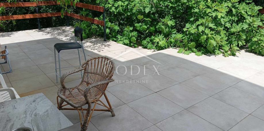 Ima veliku terasu na korištenje, te se parkirna mjesta nalaze ispred kuće.