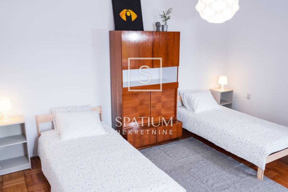 Sastoji se od kuhinje s blagovaonom, dnevnog boravka, dvije spavaće sobe i kupaone.
