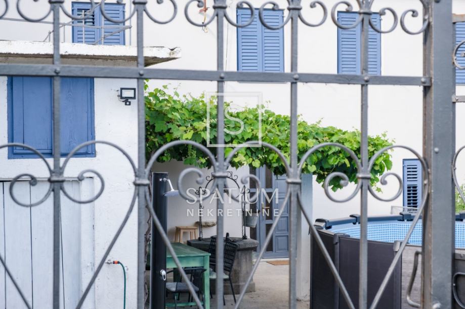 Unutar ograđene okućnice je bazen, kamena šterna za vodu i prostor za druženje.