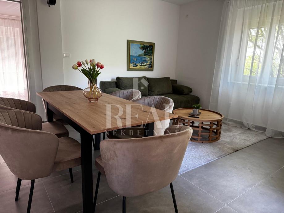 U " malom mistu" Siveriću, udaljenom 5 km od Drniša, prodajemo kompletno novoadaptiran stan površine 64 m2, a koji se sastoji od otvorenog prostora kuhinje s blagovaonom i dnevnim boravkom s izlazom na loggiu, dvije spavaće sobe od kojih jedna ima izlaz na balkon te kupaone. Na zgradi su novi krov i fasada, a u stanu je izvršena kompletna adaptacija (pločice, laminat, instalacije struje i vode, sanitarije, PVC stolarija, unutarnja stolarija).Stan se prodaje sa kuhinjom i svim aparatima. Zgrada sa 6 stanova i urednim papirima za ishodovanje kredita. Parking. Pozicija nekretnine podrazumijeva pola sata vožnje do najljepših dalmatinskih plaža. Tako blizu, a ipak dovoljno daleko od gužvi i nesnosnih ljetnih vrućina, jer ovo mjestašce i ova nekretnina Vam pružaju ugodne i mirne ljetne noći!