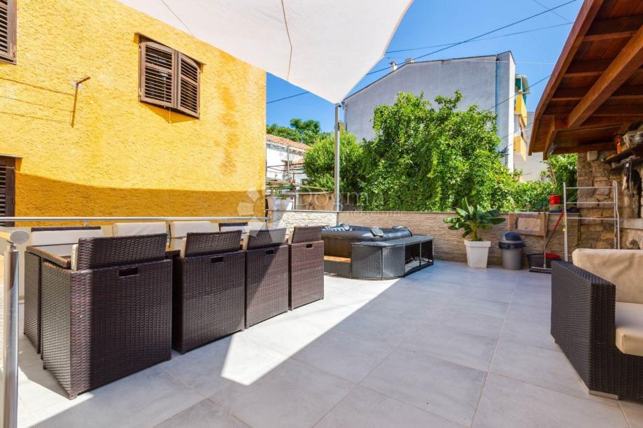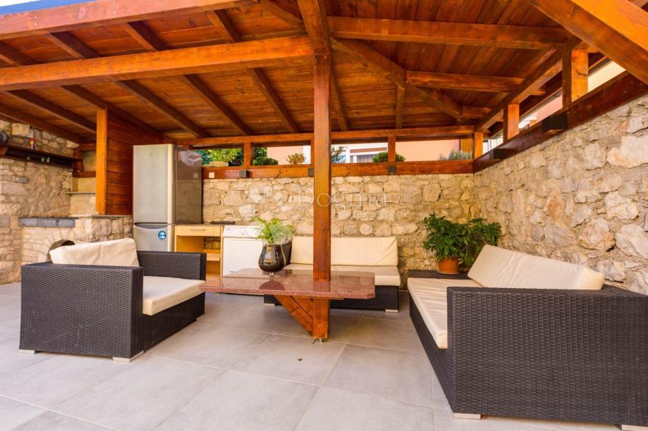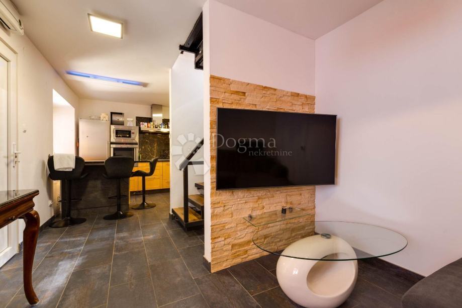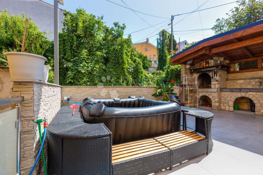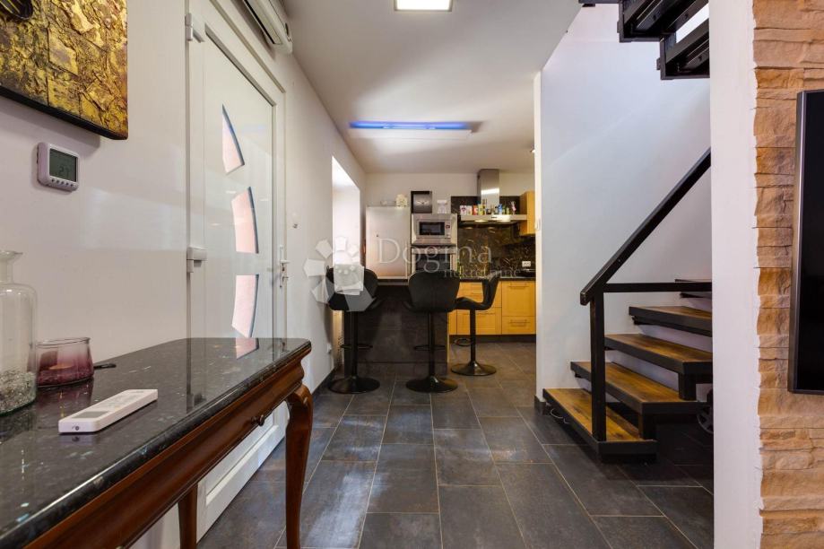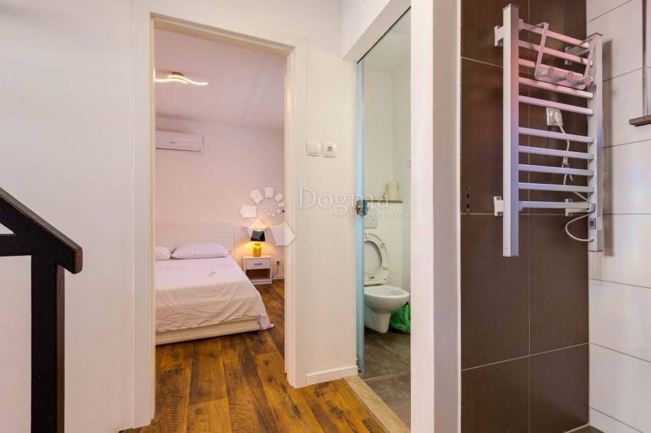 Površina kuće je 100 m² a sastoji se od 3 spavaće sobe, 2 kupaonice i dva odvojena WC-a. Kuća je uređena i opremljena kako bi vam pružila maksimalnu udobnost. Na prvom katu nalazi se prostrana kuhinja spojena s dnevnim boravkom iz kojeg se izlazi na prostranu terasu od 50 m² opremljenom ljetnom kuhinjom i jacuzzijem. Potkrovlje kuće krasi dodatna intimna terasa zaštićena od pogleda te je savršeno mjesto za jutarnju kavu ili večernje opuštanje. Kuća se nalazi na mirnoj i vrlo traženoj lokaciji. Nalazi se blizini svih potrebnih sadržaja kao što su trgovine, restorani, plaže, i kulturne atrakcije. Kuća je opremljena podnim grijanjem i klimatizacijom u svim prostorijama što vam omogućava ugodan boravak tijekom cijele godine. Prodaje se potpuno namještena.Potpuno renovirana i namještena 2024g.