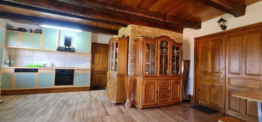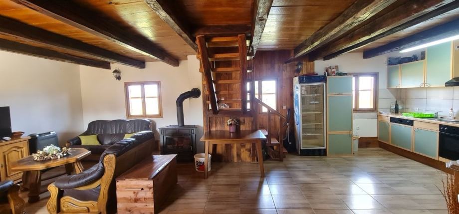 Sastoji se od prizemlja: dnevni boravak sa kuhinjom i blagavaonicom površine 50 m2, kupaonice i zatvorene ostakljene terase sa pečenjarom površine 30 m2. Unutarnjim drvenim stubištem povezano je potkrovlje gdje su dvije spavaće sobe i sanitarni čvor.
