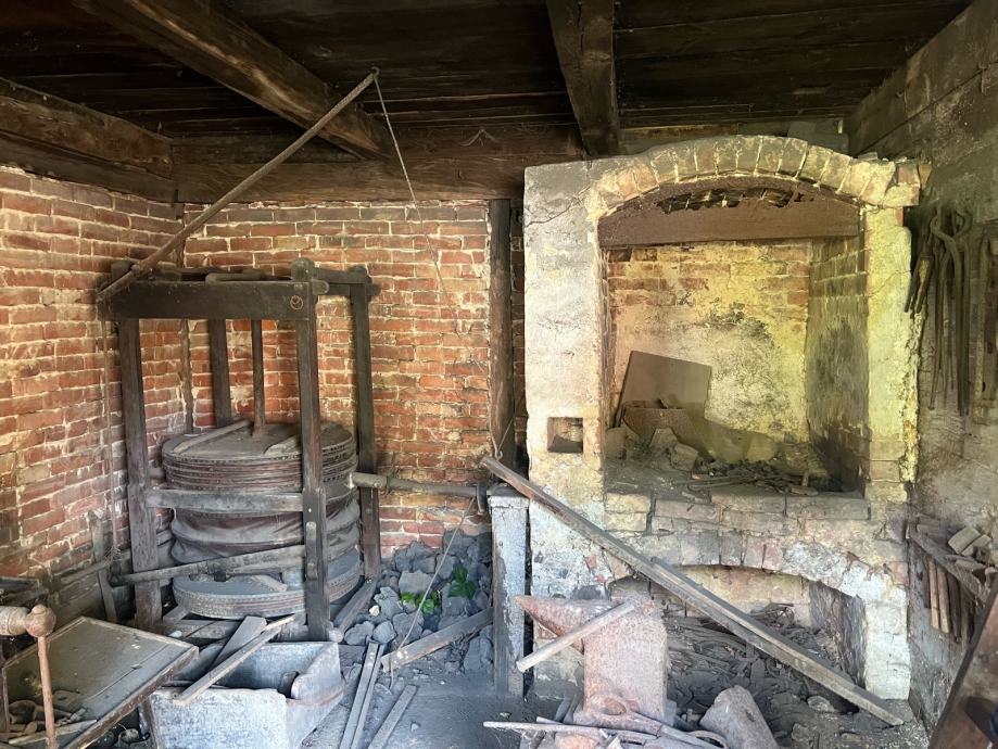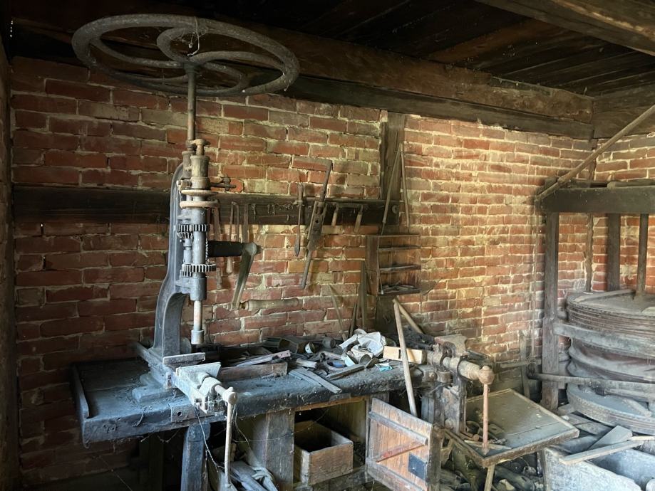 U sklopu kuće, u dozidanom dijelu, nalazi se stara kovačka radionica, potpuno opremljena (peć s puhalom, škripac, velika ručna stupna bušilica, razna kliješta…)