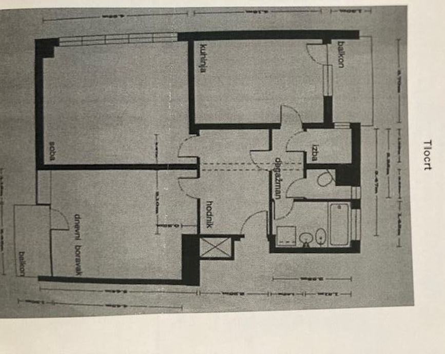 Dobrog je tlocrta i u stavri ima dvije cjeline: od ulznog hodnika, - desno se ulazi u degžman u kojem su ulazi za kuponicu, zsebn wc, izbu te komotnu kuhinju s blagavonom i izlazom na balkon, - lijevo su dvije veće sobe trenutno je jedna dnevni boravak sa izlazom na lođu, dok je druga spavća soba. U stanu je puno dnevnog svjetla.