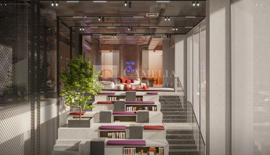 Co-working lounge, knjižnica, amfiteatar i art zona