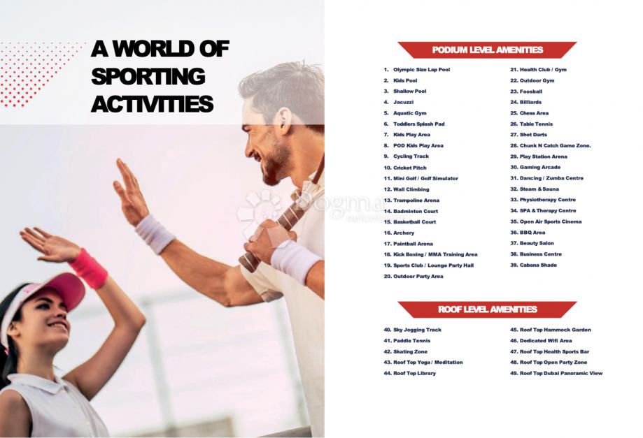 Luxuzni kompleks sadrži sve sadržaje poput: teretana, nekoliko spa zona, restorana, kafića i slično.