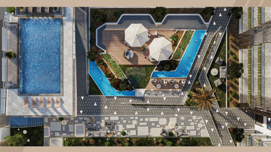 Ovaj novi projekt nudi ukupno 105 stambenih jedinica, uključujući studio stanove, jednosobne i dvosobne stanove. Dizajn se odlikuje elegantnim linijama, prostranim staklenim prozorima i bujnim zelenilom, stvarajući vizualno privlačno i ekološki prihvatljivo okruženje. Svaka jedinica je prostrana, s velikim balkonima i visokokvalitetnim završnim obradama, te parkiralištem.