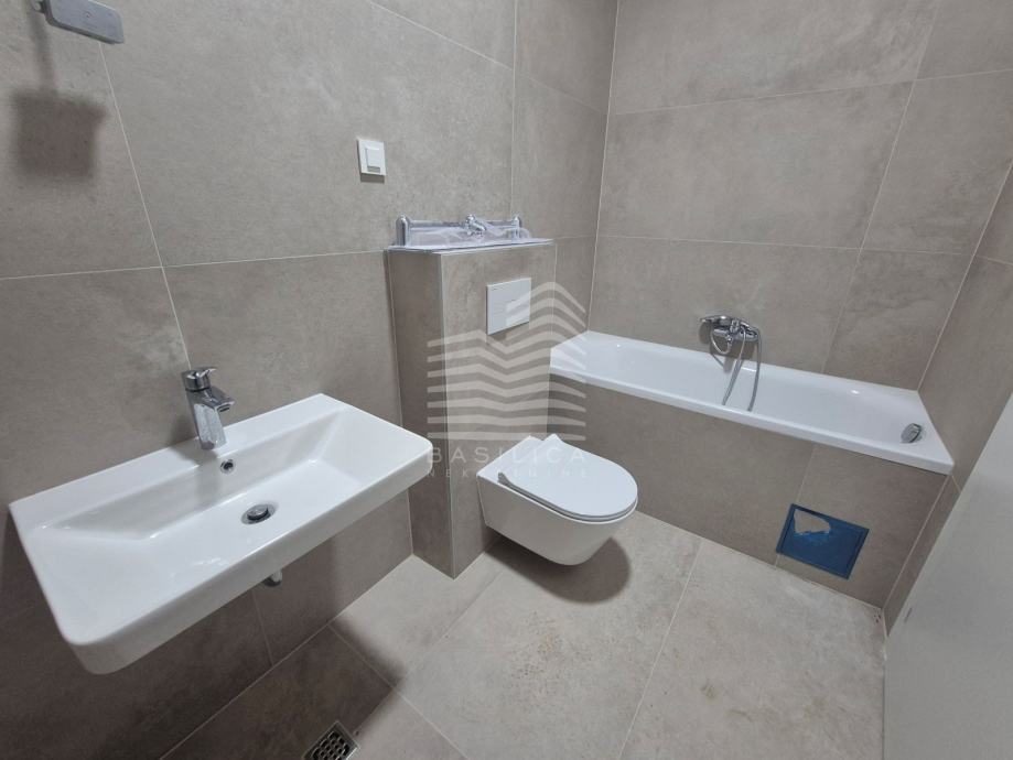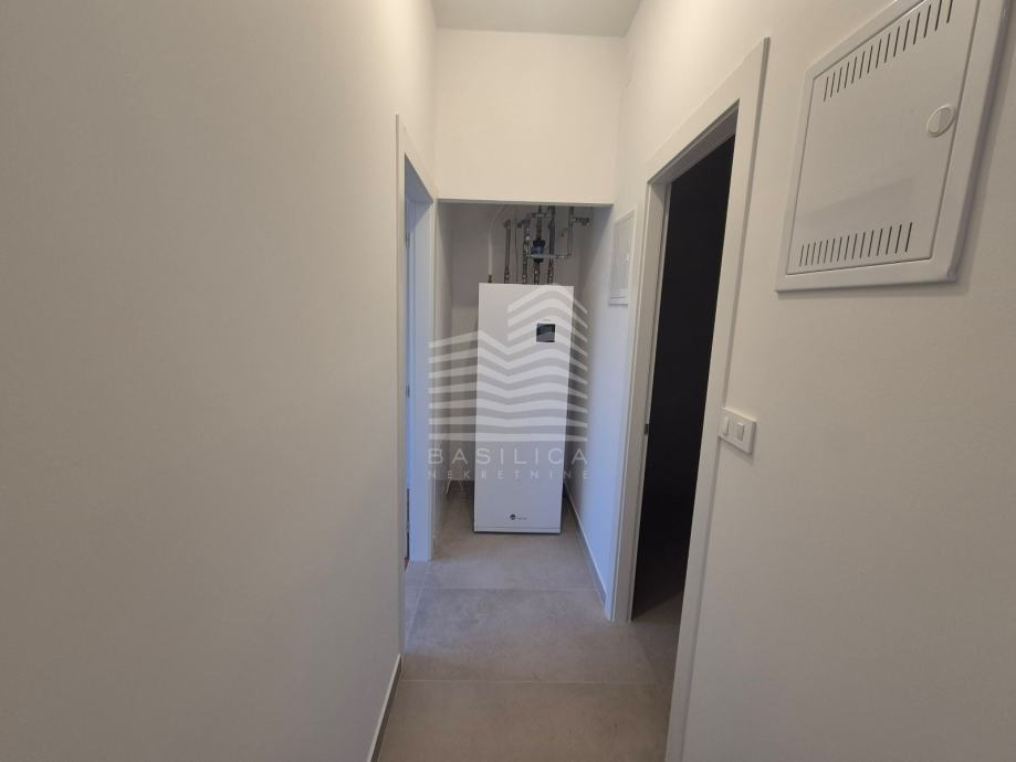 OPREMA:- B energetski certifikat- armirano betonska konstrukcija- Izolacija – termo fasada stiropor- stubište izolirano- PVC stolarija sa tri stakla sa alu roletama- dizalice topline - podno grijanje- klima uređaj- parket hrast- protuprovalna i protupožarna vrata- kupaonice sa ugradbenim školjkama i kadama ili tuš kadama
