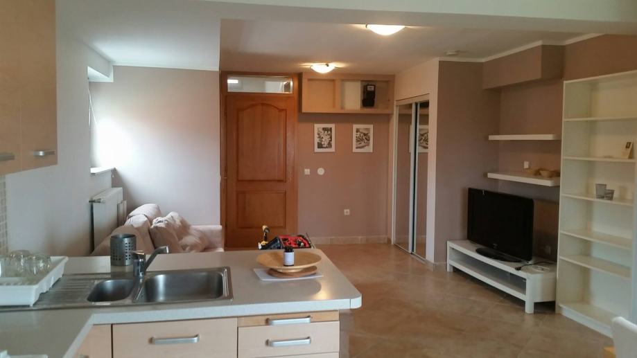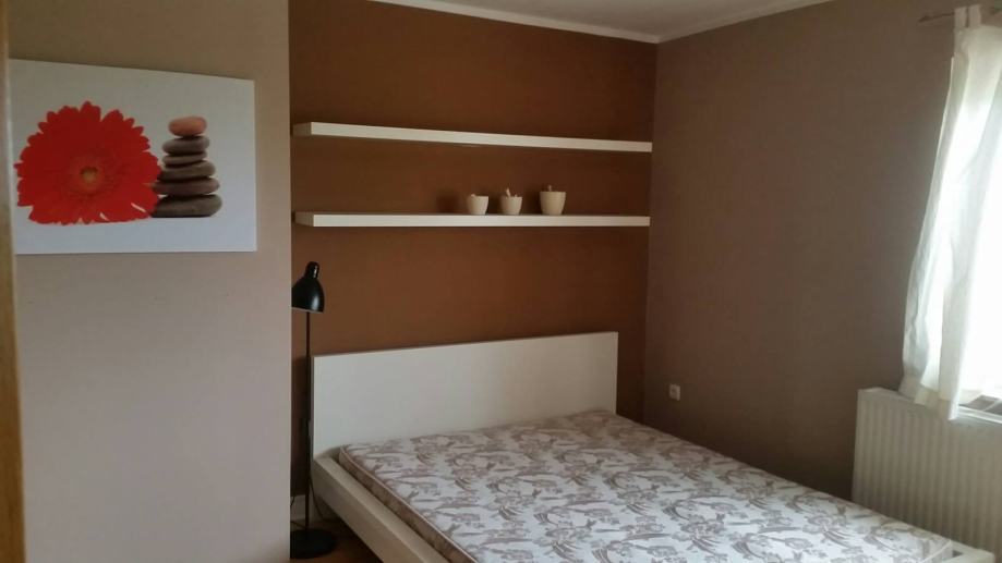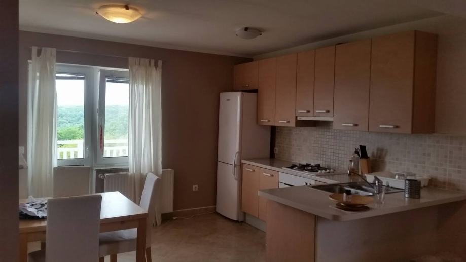 Dnevni boravak, kuhinja i blagovaona čine jednu cjelinu, spavaća soba iz koje se ide u kupaonu s wc, odvojen wc za goste, prostrani balkon s pogledom na zelenilo i grad.