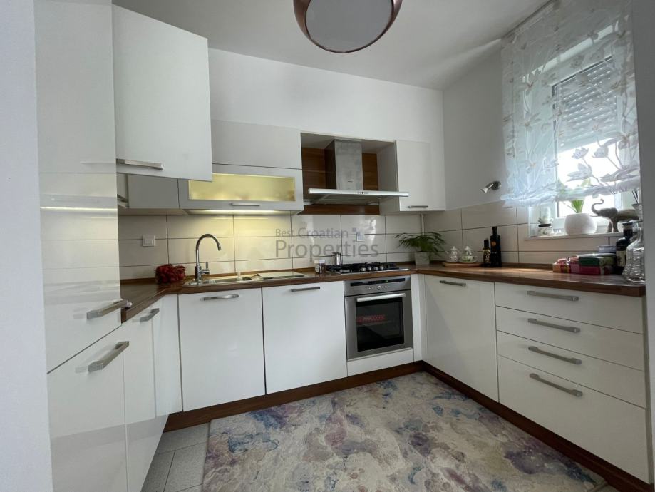 Prodaje se prekrasan svijetao i potpuno namješten trosoban stan sa garažom i parkingom na području Gornje Dubrave, u ulici Novoselečki put ( 5min od SUPER NOVA centra).