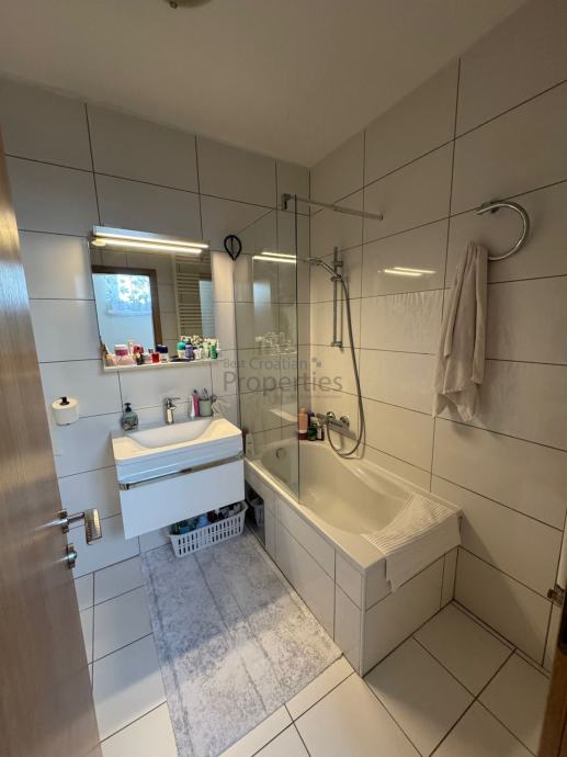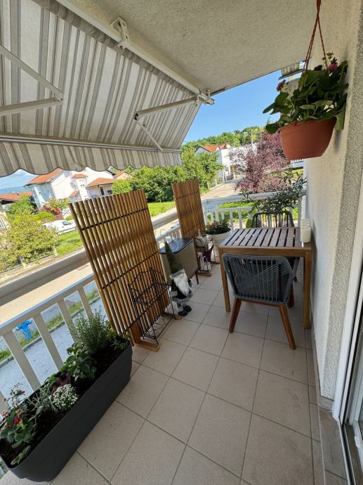 Stan ima 78m2 i sastoji se od ulaznog prostora, dnevnog boravka s kuhinjom i blagovaonom, dvije spavaće sobe, kupaonice i velikog balkona.