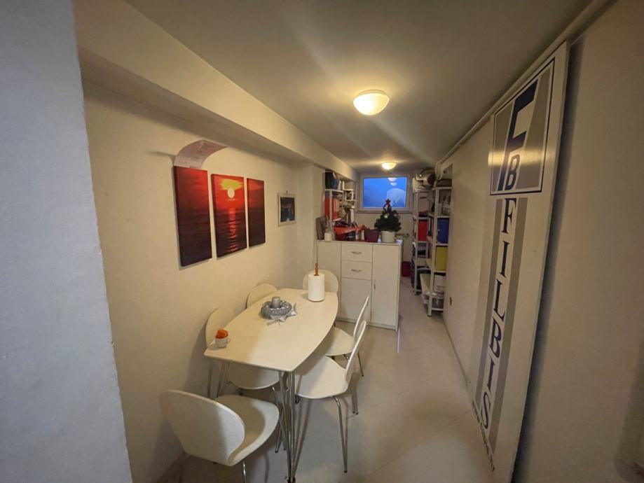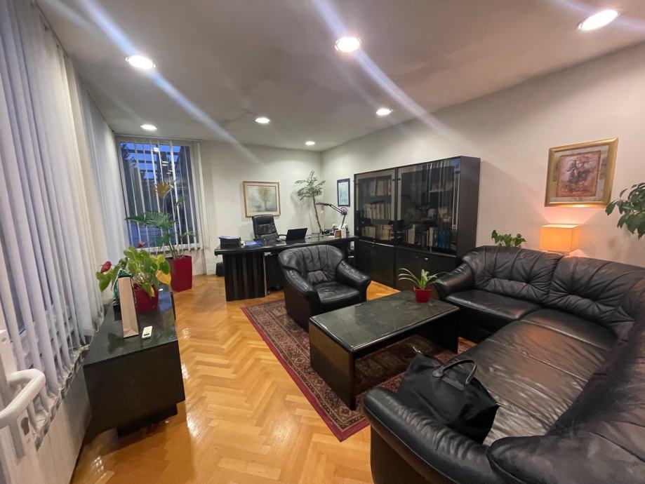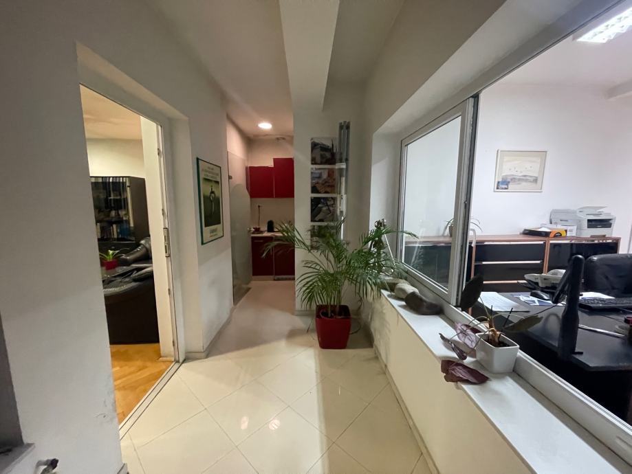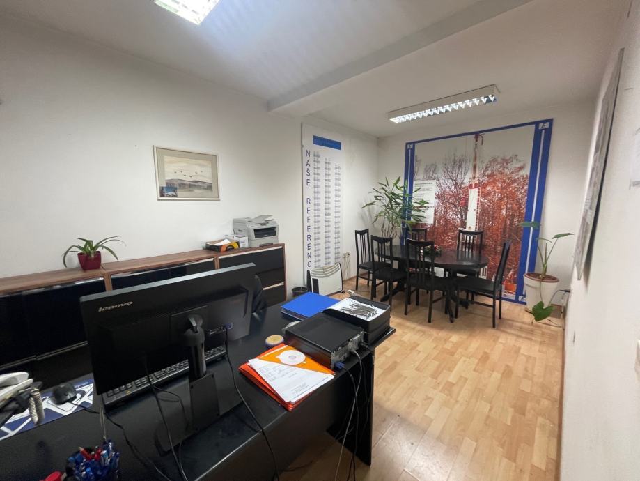 U prizemlju se nalazi poslovni prostor za tihu djelatnost, ured za 15 osoba, mala kuhinjica, natkrivena terasa.