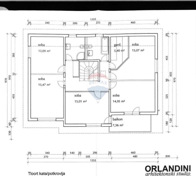 Kat- pet spavaćih soba, dvije kupaonice, walk-in garderoba, balkon.