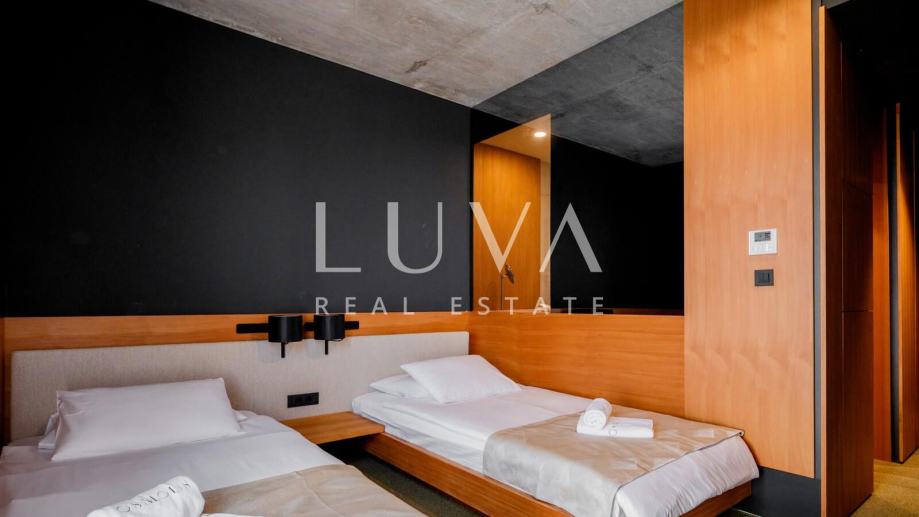 Ovaj impresivan hotel, izgrađen 2022. godine, osmišljen je kako bi zadovoljio najviše standarde suvremenog luksuza. U ponudi ima 24 elegantno uređene sobe, od kojih je svaka opremljena dizajnerskim namještajem i najnovijom tehnologijom, osiguravajući gostima nezaboravan boravak. Dodatnu vrijednost čini apartmanska zgrada koja uključuje četiri ekskluzivna apartmana — dva s vlastitim bazenima i dva s privatnim jacuzzijima, pružajući potpunu privatnost i vrhunski komfor.