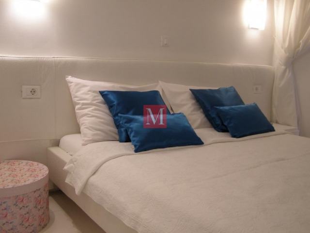 Sastoji se od ulaznog hodnika, prostranog dnevnog boravka na koji se nadovezuje kuhinja s blagovaonskim dijelom, spavaće sobe, kupaonice i velike prekrasne terase sa kamenim izlivenim ležajevima i malim bazenom.