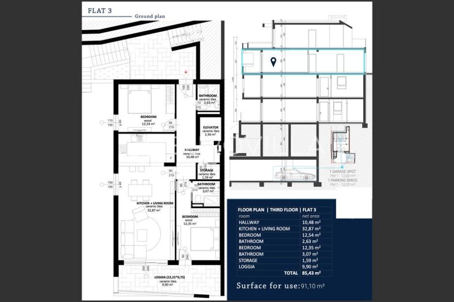 Dubrovnik, NOVOGRADNJA, Lozica, stan ukupne netto korisne površine 93,83 m2 na ekskluzivnoj lokaciji s južnom orijentacijom te prekrasnim pogledom na more.Stan S3 na trećem katu se sastoji ulaznog hodnika, spremišta, dvije kupaonice, dvije spavaće sobe, kuhinje i dnevnog boravka koji imaju...