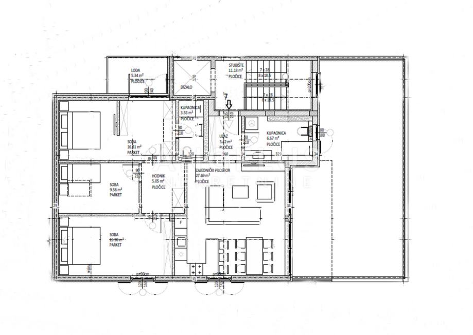 Stan se nalazi na trećem katu moderne zgrade u izgradnji, površine 104,42 m², a projektiran je s naglaskom na funkcionalnost, udobnost i luksuzan stil života.
