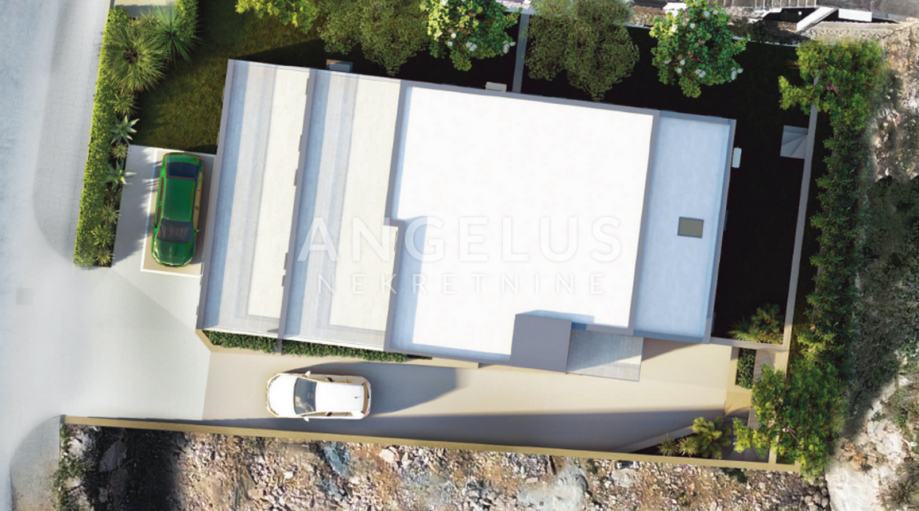 Suvremeni raspored nudi prostrani dnevni boravak, blagovaonicu i kuhinju s izlaskom na terasu idealnu za obiteljsko druženje i opuštanje. Prostor je obložen velikim staklenim stijenama koje pružaju prozračnost i obasjanost dnevnim svjetlom cijeli dan.