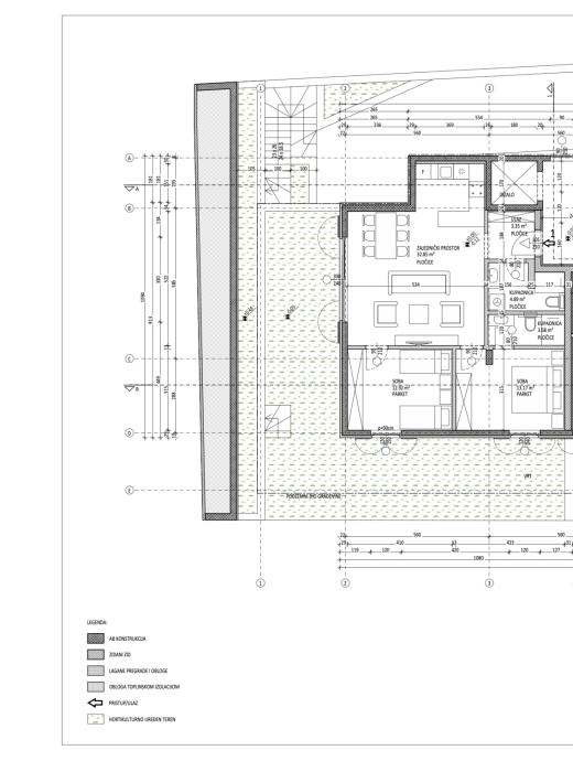Dubrovnik-Solitudo is a two-bedroom apartment 70.76 m2 on the ground floor of a residential building with an elevator. It is currently under construction.Apartment S1 consists of an entrance, a living room with a kitchen and a dining room with access to the garden, and two bedrooms, of which the...