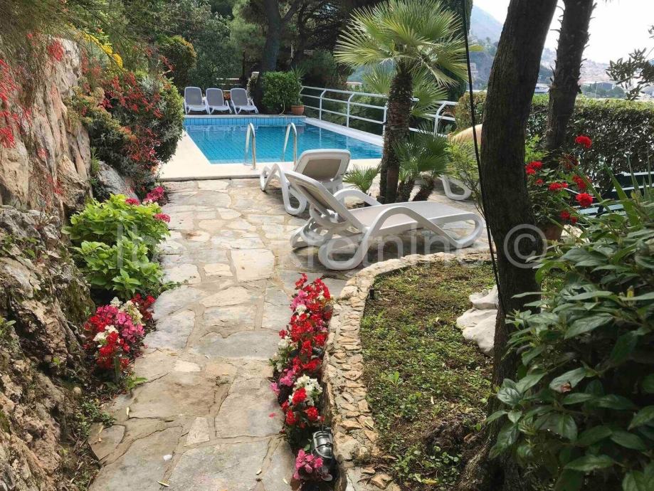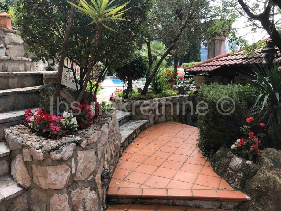 Vrt vile nalazi se u prekrasnom okruženju s lijepim privatnim prostorima, kamenjarom i mnoštvom mjesta za sjedenje i uživanje u okruženju. Tu je veliki bazen i nekoliko različitih terasa za sunčanje. Predivna je to šetnja kroz vrt s različitim cvijećem i mediteranskim biljem. Posebno izgrađen plato uz samu obalu vode savršen je za sunčanje i kupanje. S prizemne terase vode stepenice za ljetnu natkrivenu terasu na kojoj se nalazi vanjska ljetna kuhinja, roštilj i stolovi za blagovanje za ukupno dvanaest osoba. Natkrivena terasa ima prekrasan pogled na more i savršeno je mjesto za pripremu jela i uživanje na otvorenom.