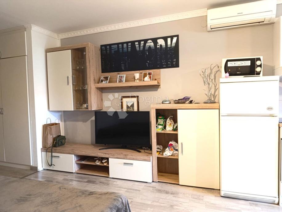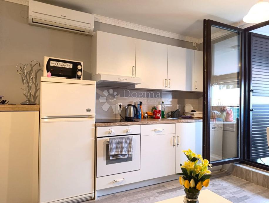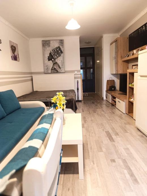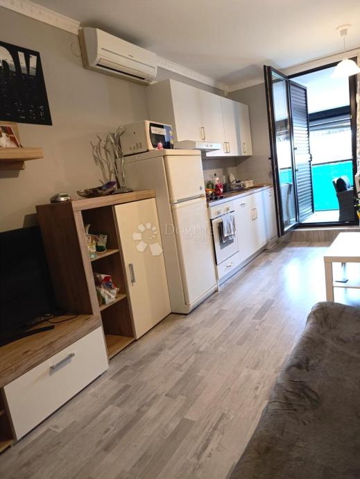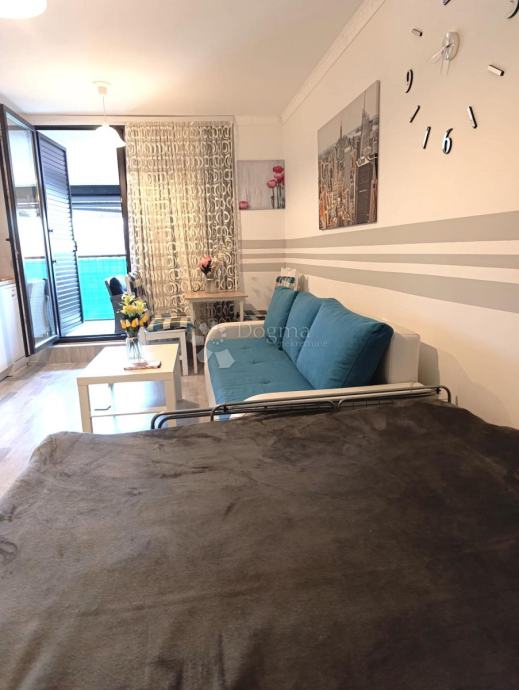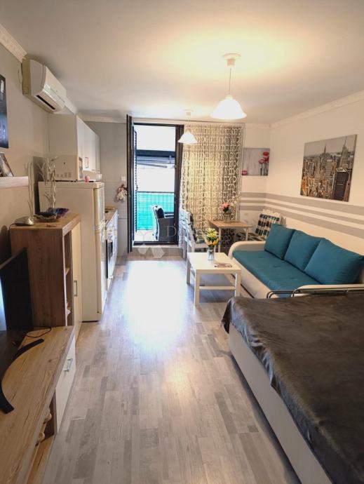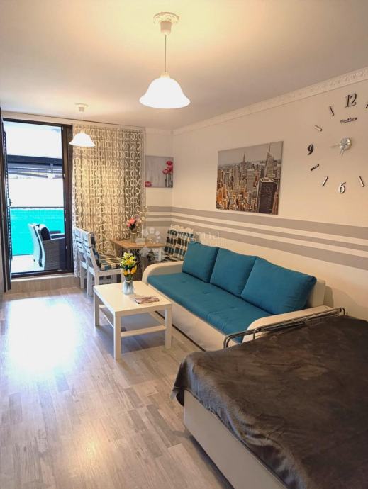 Stan koji je kompletno renoviran sastoji se od ulaznog prostora, kupaonice, prostora za spavanje, dnevnog boravaka, kuhinje s blagovaonicom i već pomenute prekrasne lođe s garniturom za sjedenje i tendom.