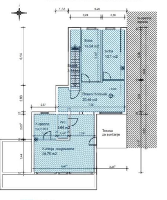 Ukupna kvadratura: - 87 m2+terasa + parking + okućnica cca 20 m2
