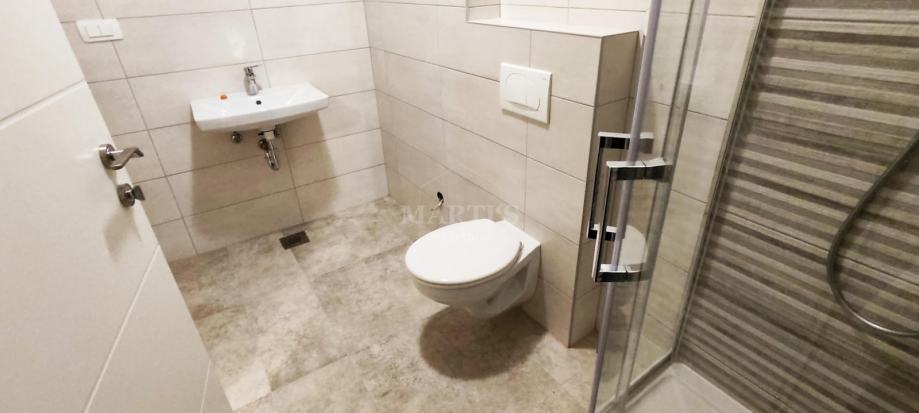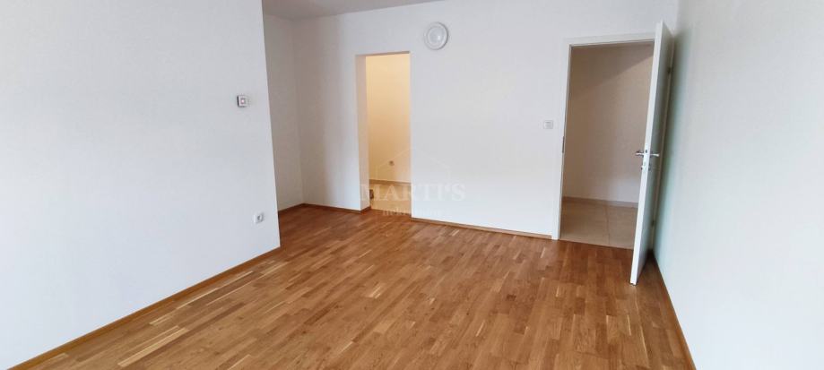 -2 spavaće sobe od kojih jedna ima izlaz na istočni balkon, poveća dnevna soba s izlazom na drugi istočni balkon i povezana s blagovaonicom i kuhinjom, ulazni garderobni hodnik, predsoblje, 1 zaseban toalet i 1 prostrana kupaonica s toaletom, tuš kabinom, umivaonikom i prostorom za perilicu/sušilicu rublja, 2 balkona.