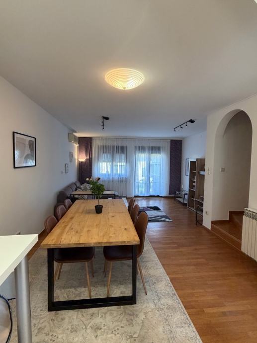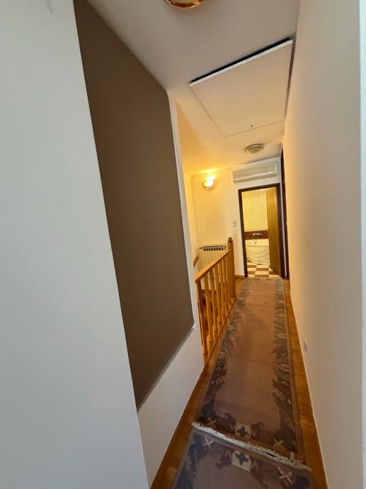 Prodajem kuću netto veličine 180m2, na tri etaže + potkrovlje sa garažom. Sastoji se od: tri spavaće sobe i kupaonicom na katu, velikog dnevnog boravka s trpezarijom, kuhinjom, hodnikom i wc-om u prizemlju, te konobe ( pogodna kao dodatna spavaća soba ), radne sobe, te ostave i kupaonice u suterenu. Nalazi se u mirnom kvartu obiteljskih kuća, te kompletne infrastrukture ( dom zdravlja, osnovna škola, vrtić, trgovački centri, prijevoz, blizina aerodroma, blizina američke škole ). Posjeduje vrt s roštiljem. Svi energenti su etažni i vrlo povoljni. Vlasništvo 1/1. Cjelokupna dokumentacija apsolutno uredna.