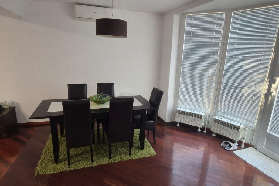 Grijanje je priključeno na gradsku toplanu, a u stanu je instaliran klima uređaj. Na fotografijama se vidi radijatorsko grijanje u dnevnom boravku uz klima jedinicu montiranu na zidu - stan ima dakle obje opcije regulacije temperature. Parket u dnevnom boravku i blagovaonici u dobrom je stanju.