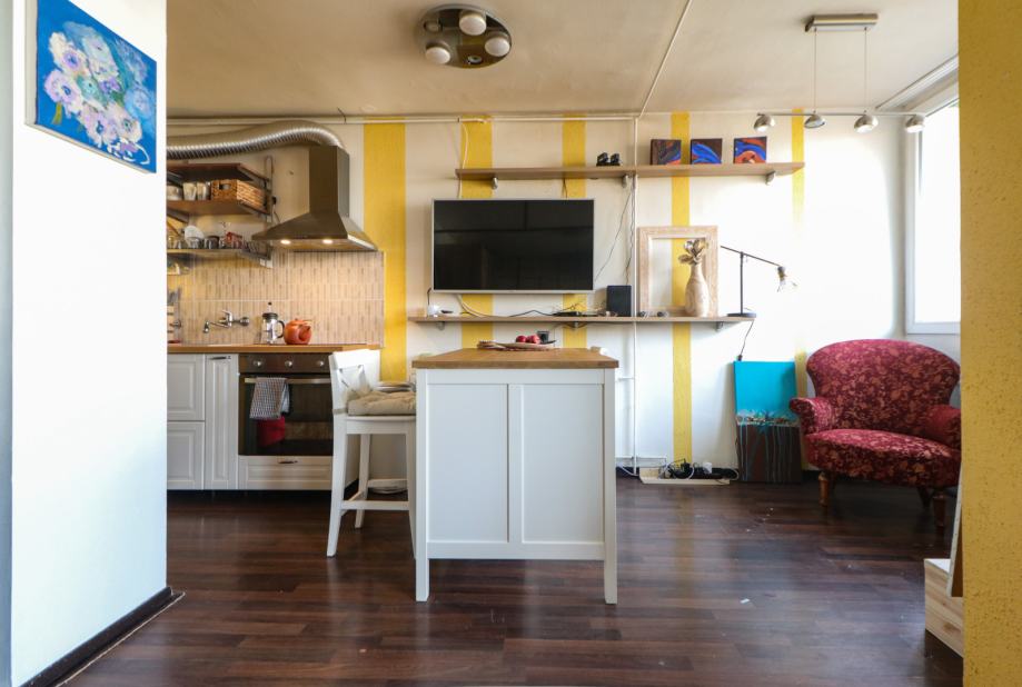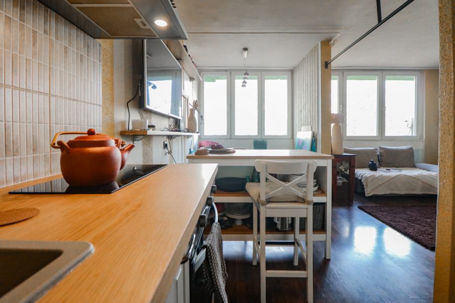 Na mjestu gdje je prethodno bio smješten balkon sada izdvojen stoji zgodan kutak za čitanje. Renovirani su kuhinja i kupaonica, postavljena je nova stolarija, pločice i laminati. Sve je rađeno po mjeri kako bi se maksimalno iskoristio prostor.