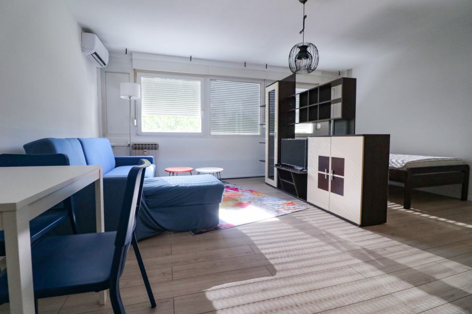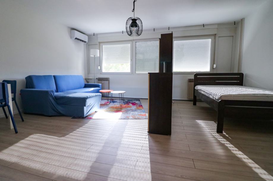 Iznajmljuje se ugodan i funkcionalan 1-soban stan površine 38 m2 na odličnoj lokaciji u Novom Zagrebu, Dugave, Hribarov prilaz.