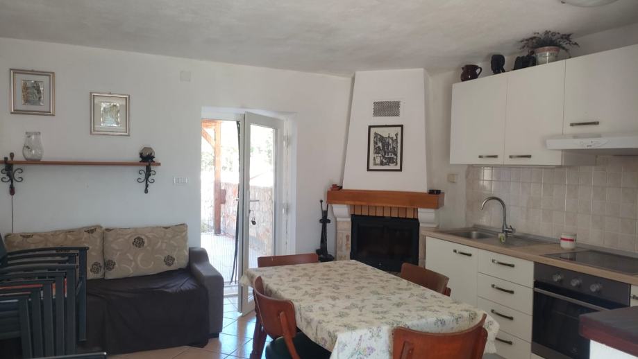 Ova prekrasna kuća u nizu, izgrađena od kamena, nudi ukupno 80 m² stambenog prostora, podijeljenog na dva odvojena apartmana: