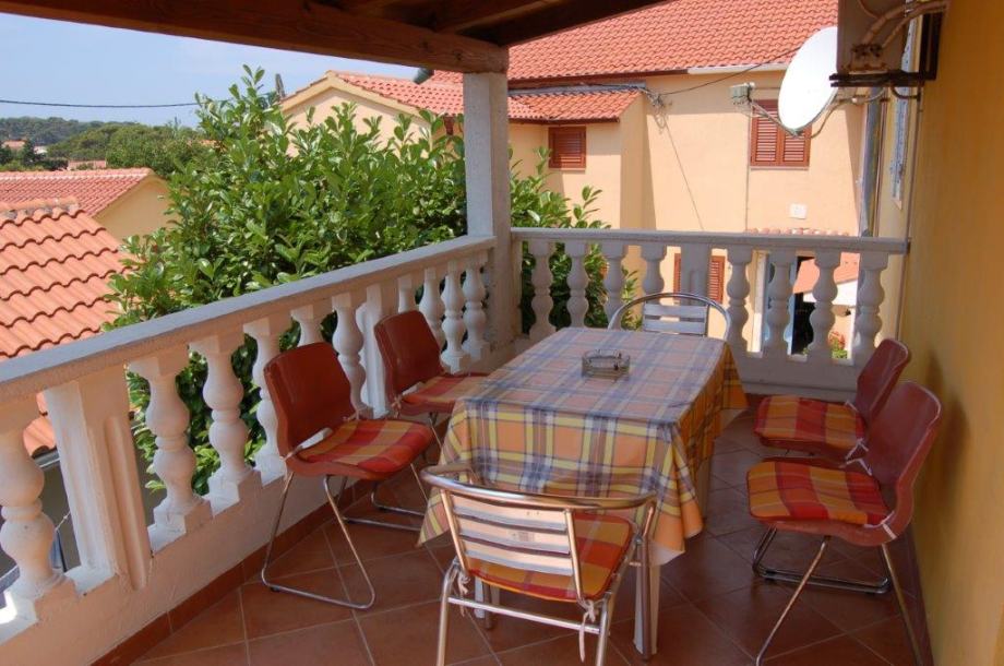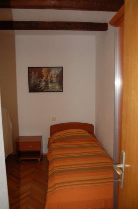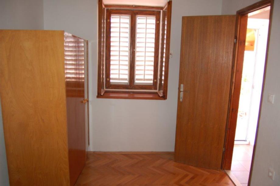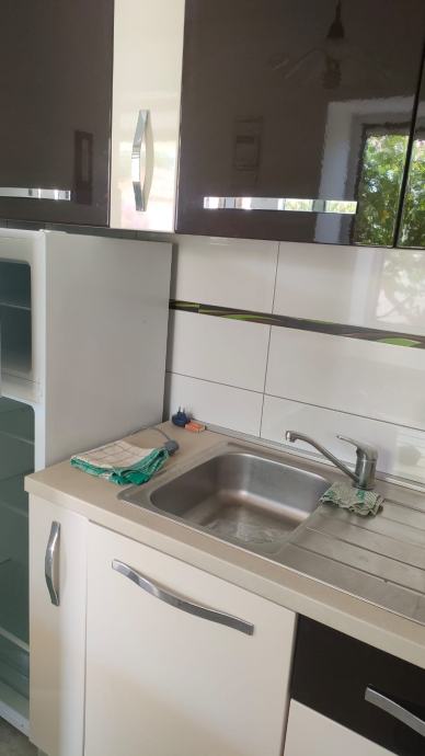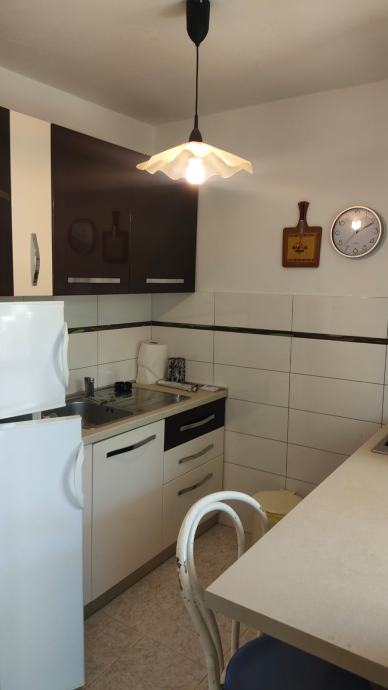 Ulaz preko namještene terase, kuhinja, jedna spavaća soba i kupaonica.